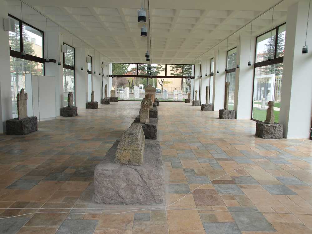 Müzenin bahçesinde de taşınmaz kültür varlıkları sergilenmektedir.