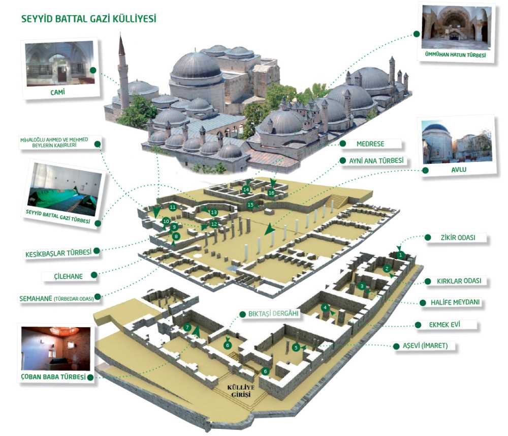 Seyyid Battal Gazi Külliyesinin Bölümleri
