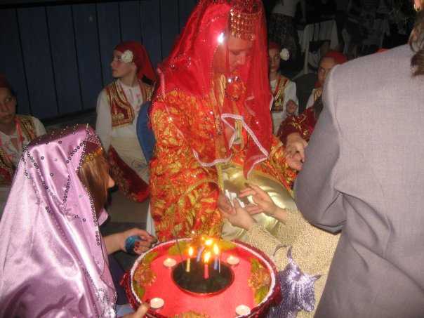 Kınayı kocasıyla en iyi geçinen yengelerden biri hazırlar. Gelin kıbleye döndürülür, abdest alır. Türkü eşliğinde gelinin ellerine ve ayaklarına kına yakılır. Kına günü sabah ezanı ile birlikte gelin suya götürülür, iyi olsun diye türkü söyletilir. Danışık yemeğinden bir gün sonra oğlan evinin üstüne davullu zurnalı, çalgılı bir törenle bayrak dikilir ve kurban kesilir. Bu, düğünün başladığının işaretidir. Gelin alma günü oğlan tarafı çalgıcıları getirir, konuklar gelir, eğlenmeye başlarlar. İki gün eğlenildikten sonra Pazar günü üstü kilim örtülü bir araba ile kafile halinde gelin almaya gidilir. Arabalara ve oğlan sağdıçlarına basma yemeni ve havlu bağlanır. Gelin evden çıkarılırken kardeş kızları önüne dikilirler, hediye almadan gelini vermezler. Dua edilir, gelin arabasının üstüne yemiş, bozuk para atılır, arkasından su dökülür, üç defa mezarlık dolaştırılarak oğlan evine yollanır.