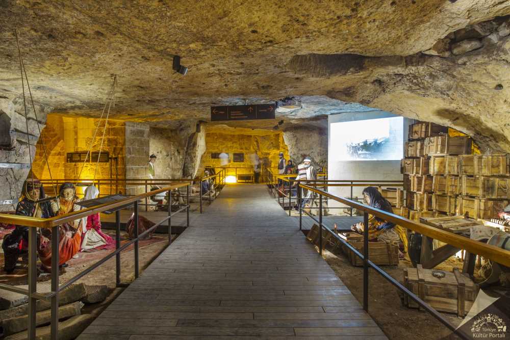 Şahinbey Milli Mücadele Müzesi'nin gezi güzergâh akışı kronolojik şekilde tasarlanmış olup, karşılama bölümünden müzeye giriş yapan ziyaretçiler, tarihi binadaki sergi-sunum alanlarını, yönlendirmeleri izleyerek gezmektedirler. Sergi-sunum alanlarının ardından ise mağaralara giriş yapılmaktadır. Mağaralara girince karşımıza mekatronik heykeller ile farklı farklı kompozisyonların oluşturulduğu, dönemin anlık yaşam sahneleri çıkmaktadır. Bu sahneler ziyaretçilere hem görsel, hem de duyusal olarak çeşitli duygular yaşatmaktadır. Mağaralarda aynı zamanda milli mücadeleden önceki dönemlerde çeşitli amaçlarla kullanılmış alanlar da canlandırılmıştır. Örneğin sabun imalathanesi bunlardan bir tanesidir.