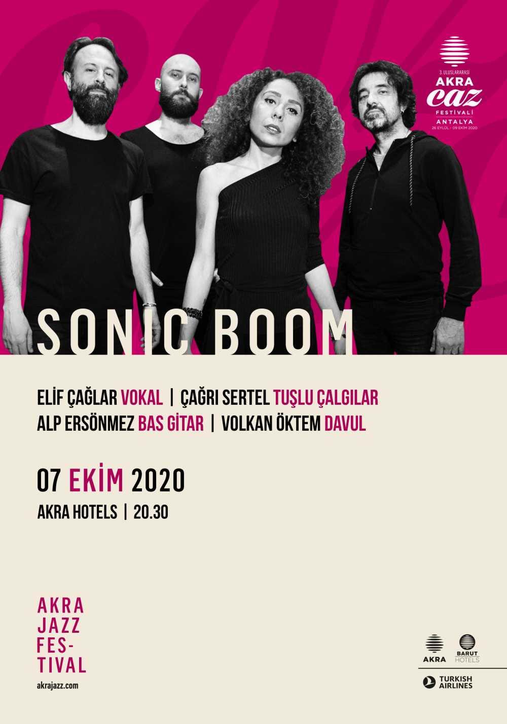 Sonic Boom, müzikseverlerin yakından tanıdığı dört başarılı isim, Elif Çağlar (vokal), Çağrı Sertel (tuşlu çalgılar), Alp Ersönmez (bas gitar) ve Volkan Öktem’in (davul) bir araya gelmesiyle, 2019 yılında kuruldu. “Sonic Boom” projesi 7 Ekim’de dinleyenlerle buluşacak.