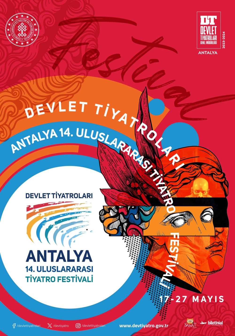 Devlet Tiyatroları tarafından 2010 yılından bu yana düzenlenen Antalya Uluslararası Tiyatro Festivali, 14’üncü kez perdelerini açmaya hazırlanıyor. Bu yıl 17-27 Mayıs 2024 tarihleri arasında seyircisi ile buluşacak olan festivalde İstanbul, Ankara, İzmir, Bursa, Erzurum, Kayseri, Sivas, Van, Diyarbakır, Trabzon, Adana ve Kocaeli Devlet Tiyatroları’nın yanı sıra İspanya, Tataristan, Polonya, Macaristan, Fransa, Küba ve İtalya’dan tiyatro topluluklarının oyun ve gösterileri sahne alacak. 17 Mayıs Cuma akşamı, İspanya’dan Jordi Purti ve Orthemis Orkestrası’nın müzik, tiyatro, mizah ve duyguyu harmanladığı “Concerto a Tempo d'Umore – DISCONCERTO” gösterisiyle açılacak festival boyunca oyunlar; Haşim İşcan Kültür Merkezi, Antalya Atatürk Kültür Merkezi (AKM), Antalya Arkeoloji Müzesi, Mall of Antalya, Aspendos Antik Tiyatrosu ve Kaleiçi Marina’da sahnelenecek. Festivalde yetişkin oyunlarının yan sıra çocuklara yönelik oyun ve etkinlikler de yer alacak. Devlet Tiyatroları tarafından düzenlenen ve uluslararası kültür-sanat camiasında uzun soluklu bir yer edinen Antalya 14. Uluslararası Tiyatro Festivali’nin biletlerini, Haşim İşcan Kültür Merkezi gişesi, biletinial.com çevrim içi adresi ve Sanat Cepte mobil uyguamasından temin edebilirsiniz.