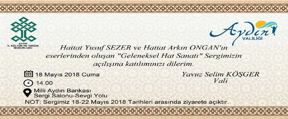 Hattat Yusuf Sezer ve Hattat Arkın Ongan'ın hat sanatı eserlerinden oluşan sergimiz 18-22 Mayıs 2018 tarihleri arasında dört gün boyunca sanatseverlerimizin ziyaretine açık olacaktır.