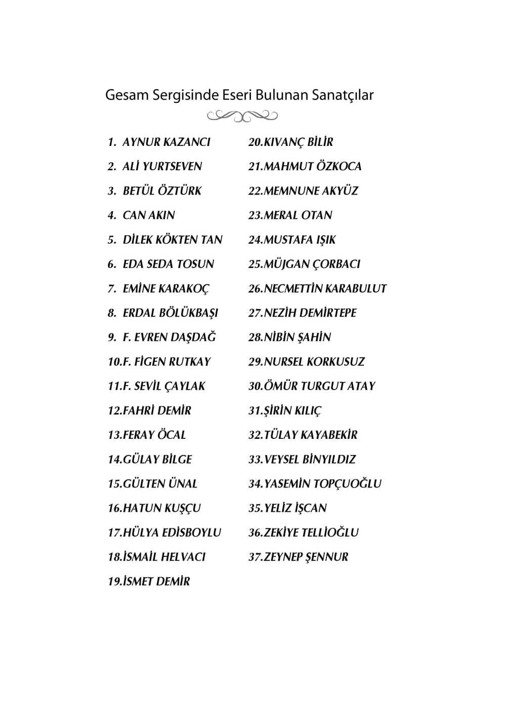 Gesam Sergisinde Eseri Bulunan Sanatçılar