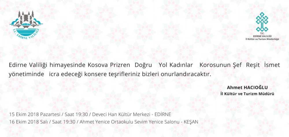 15 Ekim 2018 Pazartesi, Saat: 19:30 Devecihan Kültür Merkezi/Edirne