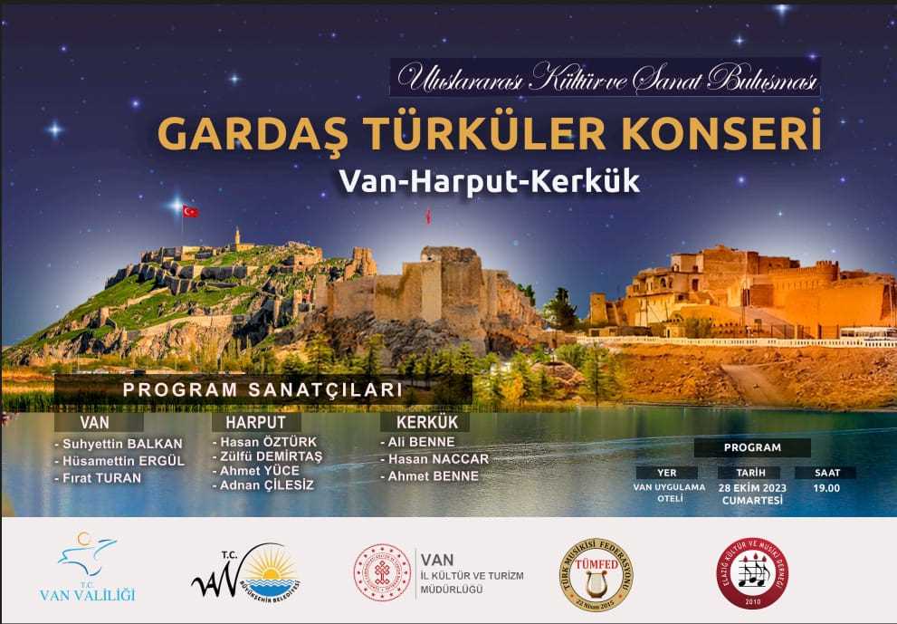 İlimizden Oturma Gecesi ekibi, Elazığ ilimizden Kürsübaşı ekibi ile Kerkük'ten sanatçıların katılımlarıyla Anadolu ve Kerkük türkülerinin söyleneceği "Uluslararası Van-Kerkük-Elazığ Kültür Sanat Buluşması" etkinliği yapılması