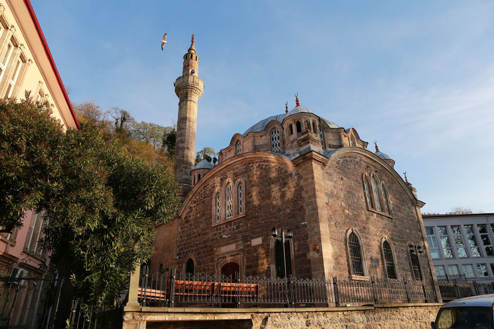 Caminin ilk olarak, Osmanlı Dönemi'nde Müslümanların oturduğu Lonca Mahallesi’nde Hacı Muhiddin Ağa tarafından inşa edildiği tahmin edilmektedir. Giriş kapısı üzerindeki kitabeden eserin 1830’da Dizdarzade Ematullah Hatun tarafından yeniden inşa edildiği anlaşılmaktadır. Bugünkü şeklini ise eşraftan Hacı Mustafa Efendi’nin 1913 yılında ikinci kez inşası ile almıştır. Caminin bahçe duvarına bitişik olan çeşme ise 1921-1924 yıllarında, aynı aileden Eşref Efendi tarafından yaptırılmıştır.