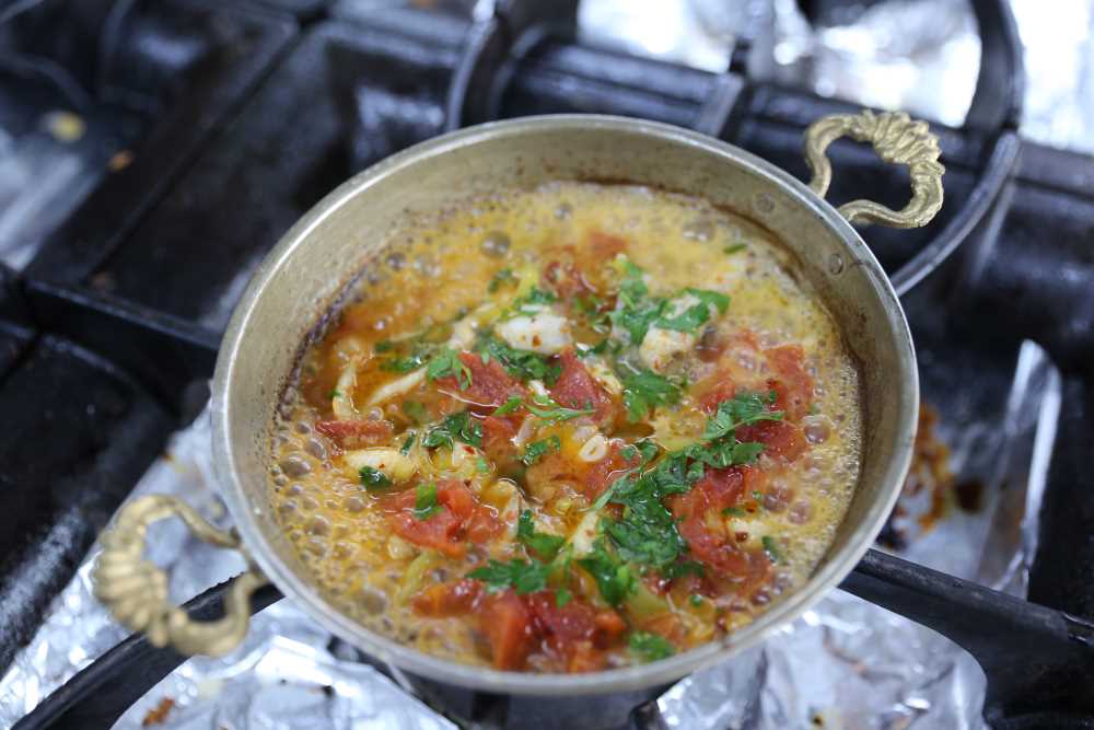 Kabuklarını soyduğumuz domatesleri küp küp ince bir şekilde doğranır. Tavada eritiğimiz tereyağın üzerine döküp kısık ateşte soteleninceye kadar pişirilir. Üzerine balıkları aralıklı bir şekilde dizilir. Çarliston biber ve kırmzı biberler doğranıp balığın üzerine yayılır. Sarımsak, kırmızı pul biber ve tuz ilave edip tavamızın ağızı kapatılır. 6-7 dakika kadar pişirilir. Üzerine rendelemiş olduğumuz kaşarları ekleyip, kaşarlar yumuşayıncaya kadar pişirmeye devam edilir.