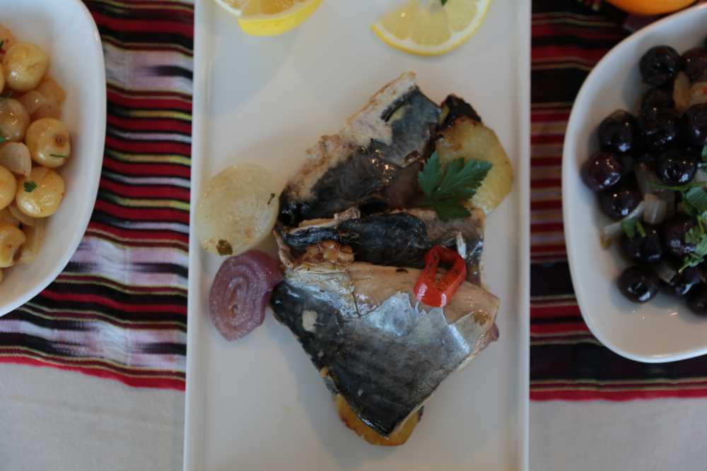 Palamutların kılçıkları çıkarılarak temizlenir. Önce ikiye sonra tekrar ikiye kesilerek 1 adet palamut dörde bölünür. Tenceremize çok az zetinyağ dökerek tabanı yağlanır ve halka şeklinde doğranmış olan patatesler tencereye döşenir (patatesler çok ince olmayacak şekilde kesilir). Balıklar patatesin üzerine uygun ve aralık kalmayacak şekilde yerleştirilir. Halka şeklinde doğramış olduğumuz soğan ve kırmızı soğan balığın üzerine yerleştirilir. Çarliston ve kapya biberler halka şeklinde doğranarak soğanların üzerine yayılır. Kalın olarak doğranmış olan maydanozlar tencerenin yüzeyini kaplayacak şekilde yerleştirilir. Üzerine zeytin yağın kalan kısmını ve parçacıklar halinde tereyağını, karabiberini, tuzunu ilave edip, üzerinede yarım bardak ılık suyu döktükten sonra tencerenin kapağını kapatarak, kışık ateşte 45 dakika suyunu çekene kadar pişirilir.