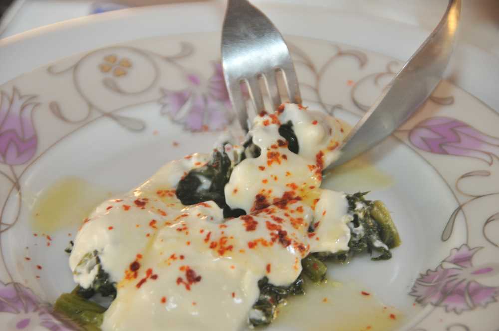 Ispanak veya pazı temizlenip ayıklandıktan sonra tencerede az su ilave edilerek haşlanır. Haşlanan ıspanaklar süzülür. Daha sonra suyu sıkılır. Bir baş soğan ince ince kıyılır. Tavaya bir miktar tereyağı koyarak soğan kavrulur. Daha sonra karışımın içine yumurta kırılır. Önceden hazırlanan ıspanak veya pazı tavanın içine konulur. Tuz ilave edilerek ateş üzerinde 15 dakika pişirilir. Ateşte kavrulan ıspanaklar soğumaya bırakılır. Yoğurda sarımsak katılarak yoğurt çırpılır, soğuyan ıspanağın üzerine dökülür, daha sonra ıspanak servis tabağına alınarak eriyen tereyağını da üzerine ilave ederek servis yapılır.