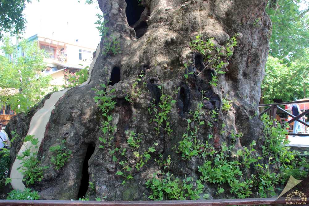 Rivayete göre, Samandağ Sahili'nde buluşan Hz. Hızır ile Hz. Musa birlikte dağa çıkarlar. Bu ağacın bulunduğu noktaya geldiklerinde Hz. Musa elindeki asayı toprağa saplar ve eğilip su içer. Tekrar dönüp baktığında asanın yeşerip fidana dönüştüğünü görür. Halk arasında ab-ı hayat suyundan can bulan fidanın binlerce yılda gelişerek bugünkü halini aldığına inanılmaktadır. Ağacın gövde çapı 7,5 metre, çevresi 21 metre, yüksekliği ise 7 metredir. Ağacın dalları yaklaşık 1000 metrekarelik alanı kaplamaktadır. Ağaç, Gayrimenkul Eski Eserler ve Anıtlar Yüksek Kurulu Başkanlığı tarafından koruma altına alınmıştır.