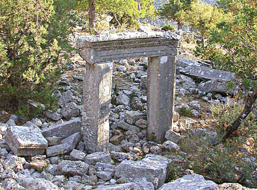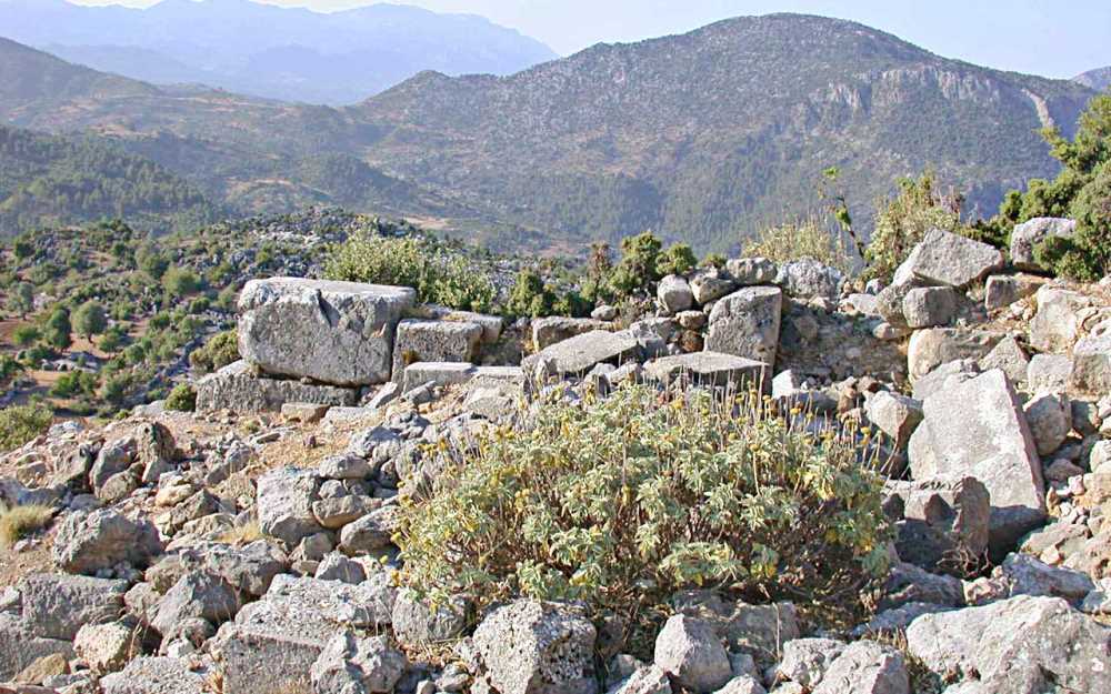 Kuzeyi ve batısı Köprüçay Vadisi ile sınırlanmış olan tepenin güney ve doğusu fazla sarp olmayıp, ulaşım doğudan sağlanmaktadır. Örenyerinin etrafı kısmen ayakta duran sur duvarlarıyla çevrilidir. Ana kaya üzerine oturulmuş olan bu asur duvarının inşasında yerel taş kullanılmıştır. Örenyerinin doğusundaki giriş kısmında Yunanca staikheden stilde bir yazıt bulunmaktadır. Sur duvarı içindeki en önemli mimari yapı tamamen yıkık durumda prostylos planlı tapınak ve güneydoğu sur duvarına yakın alanda yer alan 5 adet büyük boyutlu sarnıçlardır.