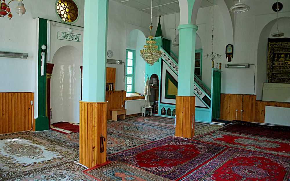 yeşil ve beyaz renge boyanmıştır. Girişini, bez bir perde kapatır. Cami,tek kat pencerelerle