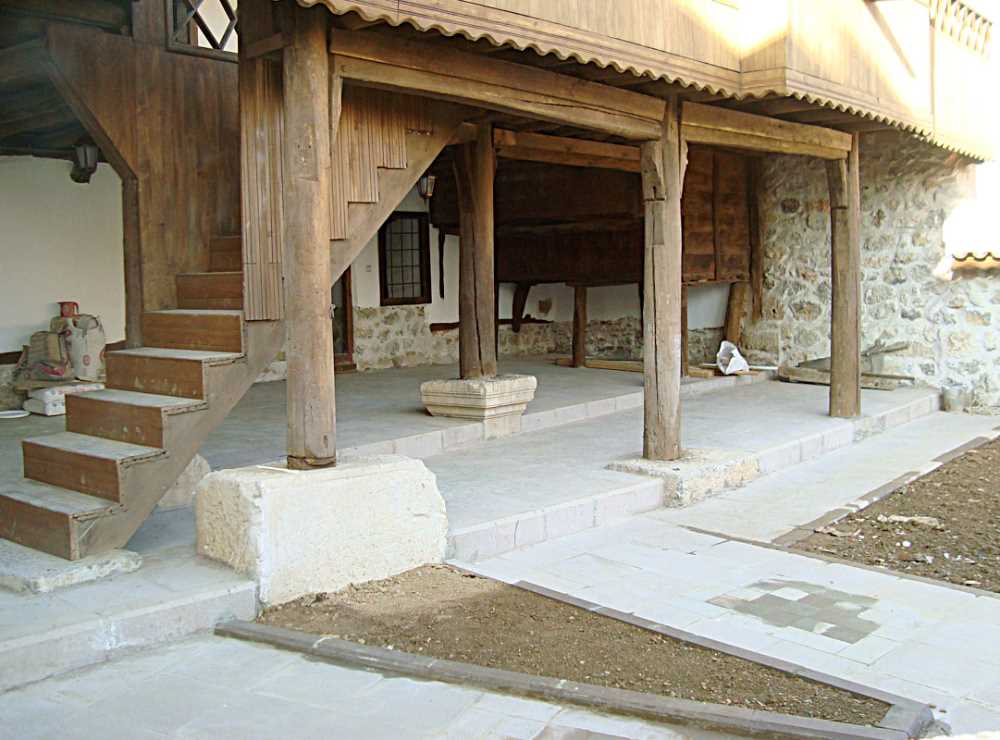 İki katlı olan kerpiç evin alt katındaki yedi adet ahşap sütun üst kattaki eyvanı taşımaktadır. Bu sütunların tamamı orijinal malzemeden olup, dört adedi kaidesi arkeolojik malzeme olan taş eserlerin üzerinde yükselmektedir. İki kademeli olan alt katın yer döşemesi modern taş malzeme ile yenilenmiştir. Ön kademedeki üç serbest ahşap sütun ve bir adet de duvara bitişik olmak üzere dört adettir. İkinci kademedeki üç ahşap sütun da orijinal malzeme korunmuştur. Alt kattaki yan yana bulunan iki odanın yer döşemesi modern malzemeden inşa edilmesine karşın tavan kısımları ahşap orijinal malzemedendir. Yine alt katta biri büyük diğeri küçük olmak üzere yerleştirilen pencere açıklıklarının söve ve lentoları ahşap aksamlı orijinal malzemeden olup şebekeler ise metal modern malzemeden oluşturulmuştur. İkinci kattaki yüklük(serpil) bölümünün orijinal ahşap aksamı alt kattan görülmektedir.