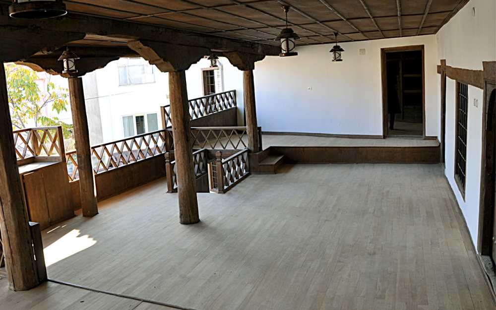 Evin ikinci katına açılan eyvan bölümüne oniki basamaklı modern malzeme ile kurulan merdivenle çıkılmaktadır. Eyvan bölümündeki altısı serbest ikisi duvara bitişik toplamda sekiz adet ahşap orijinal sütun üst örtüyü taşımaktadır. Üst kattaki dört odanın yer döşemeleri modern malzeme ile yenilenirken, tavan ve dolaplarda orijinal malzeme korunmuştur.