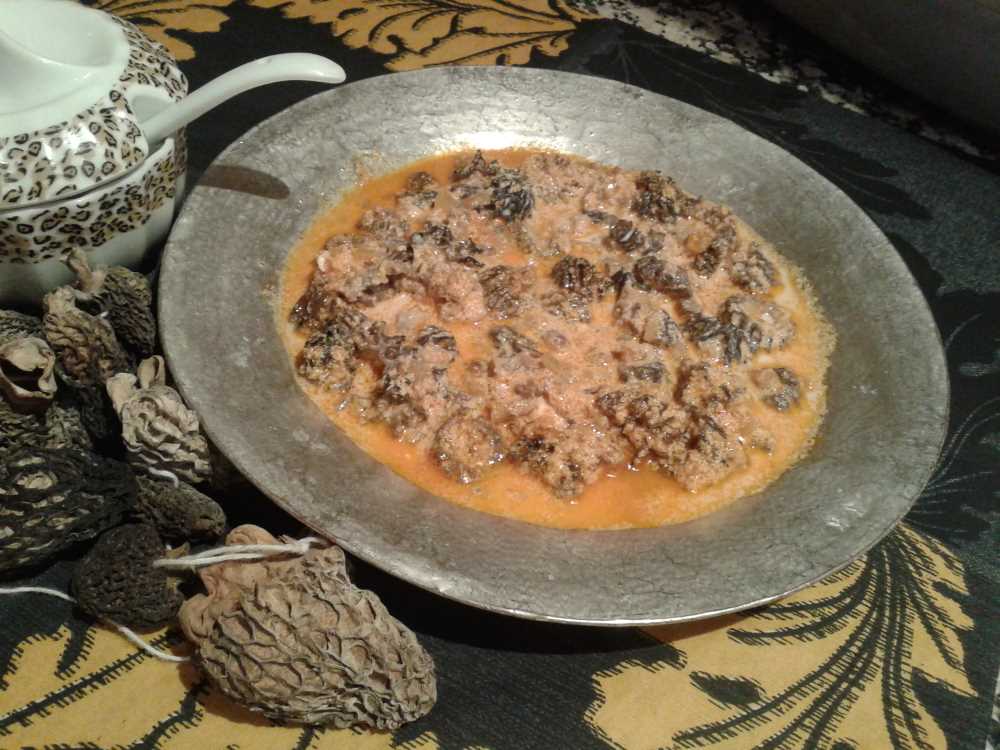Toplanan mantar yıkandıktan sonra, doğranıp bir kaba konularak, üzerine ayran ilave edilir. Bu şekilde 1 saat kadar bekledikten sonra ayrı bir kapta 2 baş soğan yağla birlikte kavrulur. Kavrulan soğana kavurma, salça, tuz ve kırmızıbiber eklenir. Önceden ayranda bekletilen göbelek mantarı süzgeçten geçirilir. Süzgeçten geçirilen mantar iyice yıkanır, kavrulmuş olan malzemeyle karıştırılır. Üzerine bir miktar su ilave edildikten sonra pişmeye bırakılır. İyice piştikten sonra iki yumurta ile bir bardak süt katılır. Bir müddet daha pişirildikten sonra ateşten indirilerek servis yapılır.