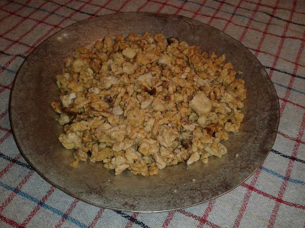 Hayvandan çıkan iç yağları ince ince kıyılarak geniş bir tavada iyice kızarana kadar kavrulur. Bir süzgece dökülerek yağ kısmı akıtılır. Süzgecin üzerinde kalan kavrulmuş yağ parçaları (kakırdak) serin yerde muhafaza edilir.