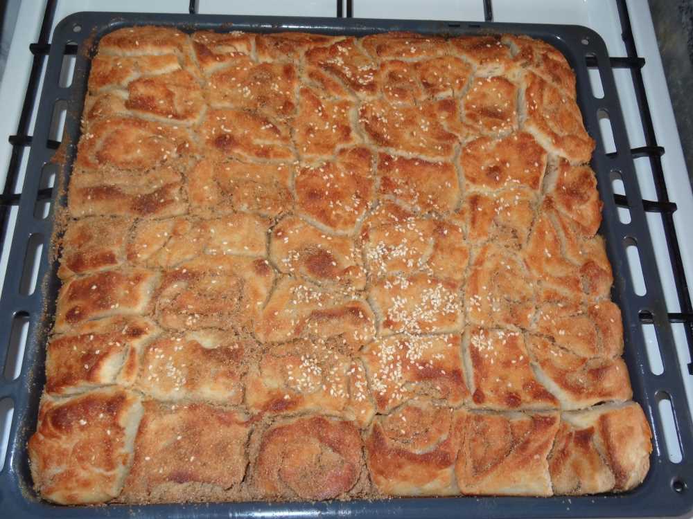 Haşhaş ezmesi, tereyağ ve sıvı yağ bir kapta karıştırılır. Yoğrulup dinlendirilen hamur, yağlanmış sini veya mermer tezgah üzerine konularak elle açılır. Açılan hamurun içine hazırlanan iç harcı sürülür ve hamur esnetilir. Cevizler esnetilen hamurun üstüne dökülür ve rulo şeklinde sarılır, 3 parmak eninde kesilerek, yağlanmış tepsiye sık bir şekilde döşenir. Üzerine yumurta sarısı sürülür ve 200 derece fırında pişirilir. Dinlendirilerek servis yapılır.