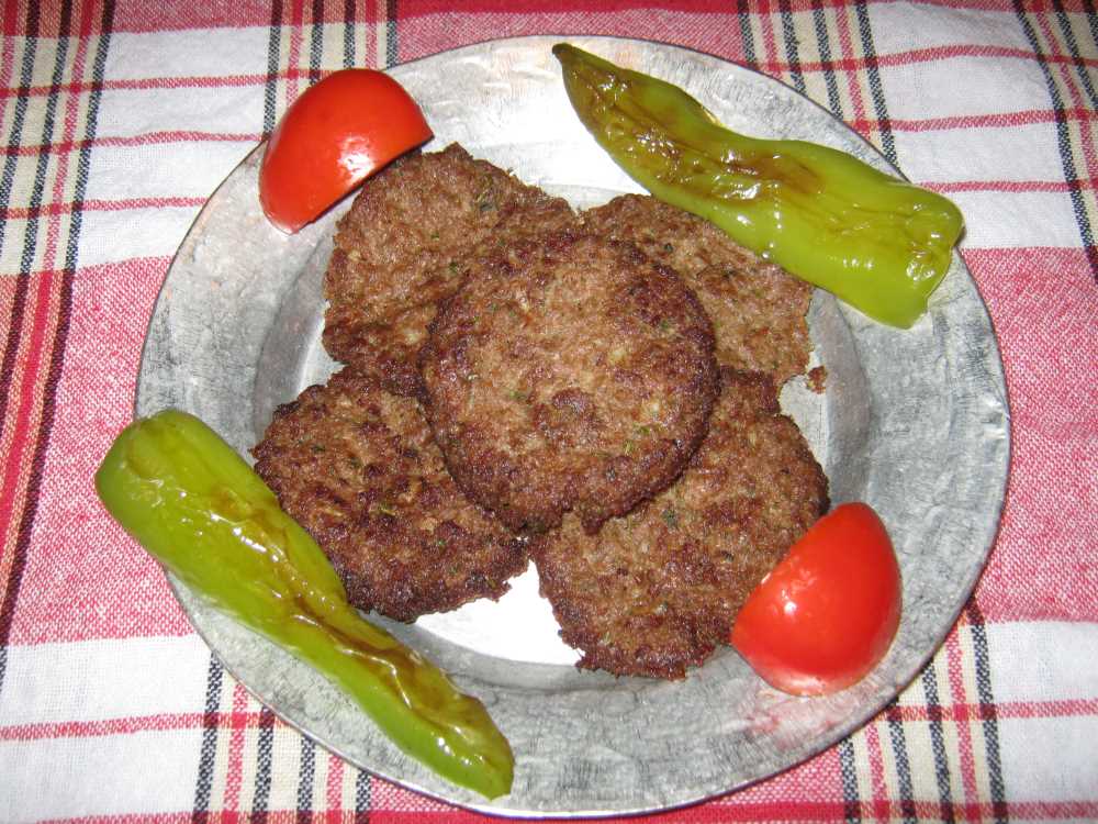 Kıyma, un, karabiber, tuz ve kekik geniş bir kap içerisinde yoğrularak özleştirilir. Küçük bezelere ayrılarak, her iki tarafı unlanır. Et tahtası üzerinde dövülerek yuvarlak pişi şeklinde açılır. Köfteler, kızgın yağda her iki tarafı da kızartılarak pişirilir ve sıcak olarak servis yapılır.
