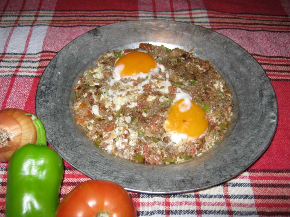 Kıyma yağda biraz kavrulduktan sonra, ince doğranmış soğan ilave edilerek kavrulmaya devam edilir. Küçük doğranmış yeşilbiber, domates, tuz ve karabiber eklenerek bir müddet daha kavrulur. Daha sonra tencerenin içinde yumurtalar için açılan küçük yuvalara, yumurtalar kırılır ve kısık ateşte pişirilip, servis yapılır.