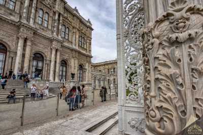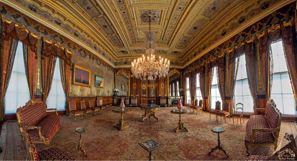 Bu avize Kraliçe Victoria’nın hediyesidir. Bu Taht Salonu 19 Mart 1877 tarihinde II. Abdülhamit’in Osmanlı Meclisi açılışına ev sahipliği de yapmıştır. Ayrıca Harem’de Taht Salonu’nun izlenebileceği bir koridor vardır. Harem; törenlerin yapıldığı Mavi Salon, kadınların eğlendiği Pembe Salon, Atatürk’ün kaldığı odalar, Valide Sultan odaları gibi farklı mekânları barındırır. Sarayın girişinde yer alan otuz metre yüksekliğindeki saat kulesinin ise 1895 yılında tamamlandığı söylenir.