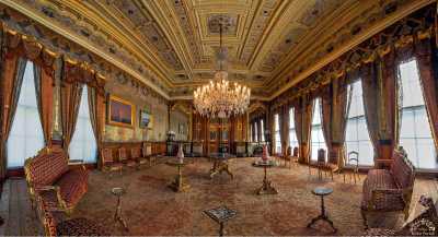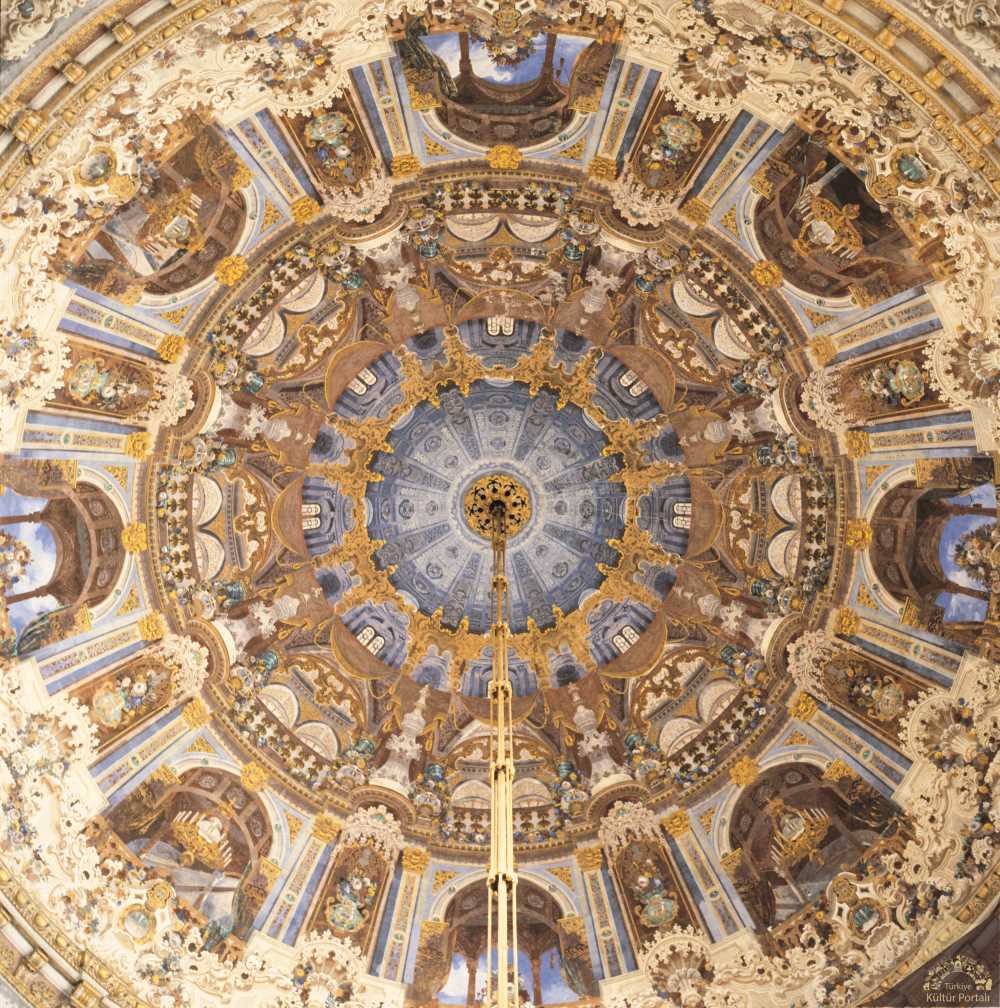 Mabeyn merdivenlerinin korkulukları kristallerle süslenmiş harikulade bir görünümde olup Mabeyn’deki Taht Salonu’nda bulunan 36 metrelik kubbeden sarkan dört tonluk ve yedi yüz elli ampullü kristal avize, salona Avrupai bir hava katmaktadır.