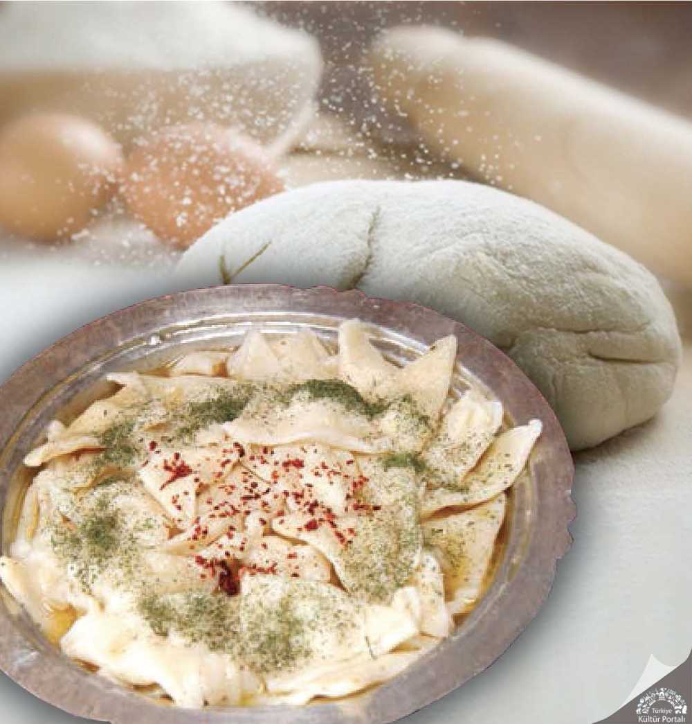 Un, yumurta, su karışımı ile mantı hamuru hazırlanır. Yufkalar açılır, kare şeklinde kesilir. Süzme yoğurt nane ile karıştırılır. Bu karışım kare kesilen parçaların içine koyularak üçgen şeklinde kapatılır. Kaynar tuzlu suda haşlanır. Süzüldükten sonra üzerine kızdırılmış tereyağı dökülerek sıcak ikram edilir.