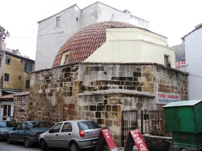 Hamam Karamustafa Paşa tarafından miladi 1811 yılında yaptırılmıştır. Binanın soyunma bölümü kesme taş diğer kısımlar moloz taşından yapılmıştır.10*10 metre ölçüsünde olan soyunma kısmı merkezi kubbe ile örtülüdür.3,60*12,15 metre ölçüsündeki soğukluk kısmının üzeri 3 adet kubbe örtülmüştür. Hamamın soyunma kısmını örten merkezi kubbesinden başka soğukluk ve yıkanma odaları üzerinde üç sıra halinde yan yana dizilmiş dokuz adet kubbesi bulunur. Kubbenin üzeri ahşap çatı ve kiremitle örtülüdür. Hamam 2005 yılında restore edilmiştir. |