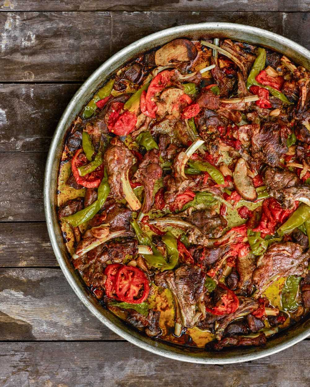Domatesler ve biberler iri iri doğranır ve sarımsaklar ayıklanır. Pirzolalar tepsiye alınıp üzerine tuz, karabiber ve zeytinyağı dökülüp karıştırılır ve tepsiye dizilir. Biber ve sarımsaklar tepsiye serpiştirilir. Üzerine kalan pirzolalar dizilir. Etlerin üzeri domatesle kaplanır. Domateslerin üzerine ince kıyılmış kuyruk yağı ve tuz serpiştirilir. Üstü kapalı olarak 1 saat, üstü açık olarak 45 dakika 180 derecede pişirilip servis edilir