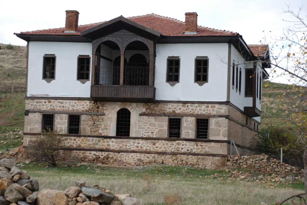 Zemin katı düzgün olmayan kesme taş malzemeli, aralarda yatay ahşap hatıllıdır. Üst kat, ahşap iskelet sistem arası kerpiç malzemeli olup, beyaz renk sıvalıdır. Ahşap kırma çatı beden duvarından dışa çıkmalı olup, saçak altı ahşap kaplıdır. Dikdörtgen ve yuvarlak kemerli pencereler ahşap çerçeveli, giriş kattakiler demir parmaklıdır. Konağa giriş, güney cephesindeki dikdörtgen bir açıklıkla sağlanmaktadır. Kapının hemen üzerinde 1 adet, sol tarafında ise 3 adet dikdörtgen pencere açıklığı bulunmakta olup, sağ taraf sağırdır. Üst katta merkezdeki çıkma, ahşap malzemeli balkon şeklinde düzenlenen ahşap sütuncelerle destekli seyirlik bölümünün her iki yanında 2’şer pencere yer almaktadır.
