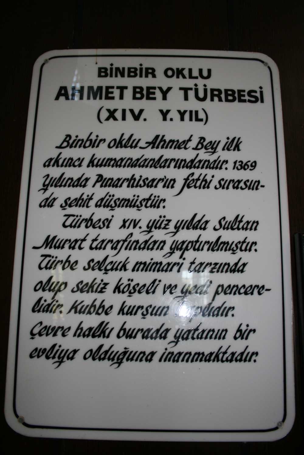 Pınarhisar Binbiroklu Ahmet Baba Türbesi (14.y.y.) (Tanıtım yazısı)