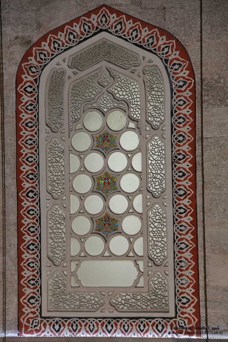 Cami, güneyde Sıbyan Mektebi, kuzeyde çarşı ve medresenin ortasına denk gelecek şekilde yerleştirilmiştir. Cami üç girişe sahiptir. Ana giriş, camiin kuzeyinde bulunan merkezi Kubbenin altından olan giriştir. Diğer iki giriş ise, avlunun iki yanında son cemaat yerinin yakınında karşılıklı iki kapı ve uzun bir koridordan olmaktadır. Bu koridorlardan camiin avlusuna girilir. Koridorların bitiminde yayvan kemerli dik kapı, bunları üstünde kubbeli iki oda vardır. Bu odaların üzerleri, kasnaksız, sivri olarak biten kubbelerle örtülüdür.