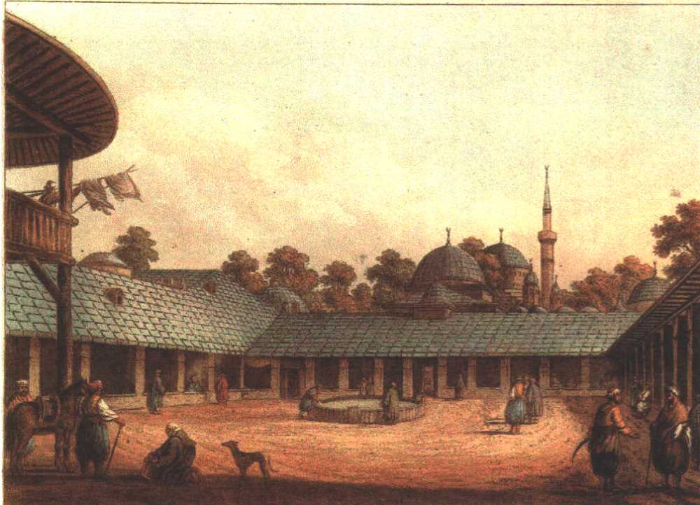 Evliya Çelebi Seyahatname'sinde kervansaray hakkında şunları yazmaktadır. Lüleburgaz’ın kervansarayı büyük bir kapıdan girilen kale gibi karşı karşıya yüzeli ocağı olan büyük bir handır. Avlusu, deve konulan yeri ve ahırı dardır ki, sadece ahırı üç binden fazla hayvan alır. Kapıda devamlı olarak bekçileri bulunur. Akşam olunca kapıda mehterhane çalınıp kapı kapanır. Bekçiler vakıf olan kandilleri yakıp kapı dibinde yatarlar. Eğer gece yarısı misafir gelirse kapıyı açıp içeri alırlar. Hazır yemek getirirler. Amma dünya yıkılsa içeriden dışarı bir kimse bırakmazlar. Vakıf şartı böyledir. Tâ bütün misafirler kalkınca yine mehterhane çalınıp herkes malından haberdar olur. Hancılar tellallar gibi; -“Ey ümmet-i Muhammed, Malınız, canınız, atınız, donunuz tamam mıdır? Diye rica edip bağırırlar. Misafirler; -“Hepsi tamamdır. Hak, hayır sahibine rahmet eyleye” dediklerinde, bunlar kapıları açıp kapı dibinde; -“Yollarda gafil gitmen, vakit kaybetmen, herkesi arkadaş etmen, yürün, Allah kolaylık getire” diye dua ve nasihat ederler. Herkes bir tarafa yol alır.Bu yapı da Sokullu Mehmet Paşa’nın olup, demir kapının kemeri üzerinde beyaz mermer taşa Karahisari hattıyla kitabesi şöyle yazılmıştır. “Bu kervansaraya gelen oldu hep revan”.
