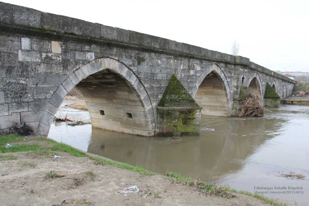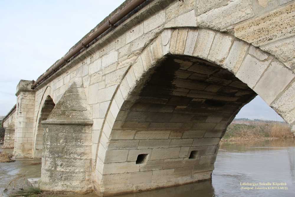 Sokullu Mehmet Paşa Köprüsü; İstanbul-Edirne asfaltı üzerinde, Lüleburgaz’ın Edirne çıkışı tarafında Lüleburgaz Deresi üzerinde bulunmakta olup, Sokullu Mehmet Paşa tarafından Mimar Koca Sinan’a yaptırılan Lüleburgaz Sokullu Mehmet Paşa Külliyesi ile birlikte 1569-1570 yıllarında yapılmıştır. Çevre taşları ince yonu, menba tarafındaki orta ayak detayları sağlamdır. Mansap tarafında, muntazam on iki köşeli bir planın yarısı üzerine resmedilen piramitten oluşan kısım, Lüleburgaz tarafında olan ayakta ilk şeklini muhafaza etmektedir. Diğeri ise sonradan ehil olmayan ustalarca, piramit yerine koni şeklinde yapılmıştır. Halen kullanılmakta olup, İstanbul-Edirne asfaltı İlçe dışına alındıktan sonra bu köprünün yükü azalmıştır.