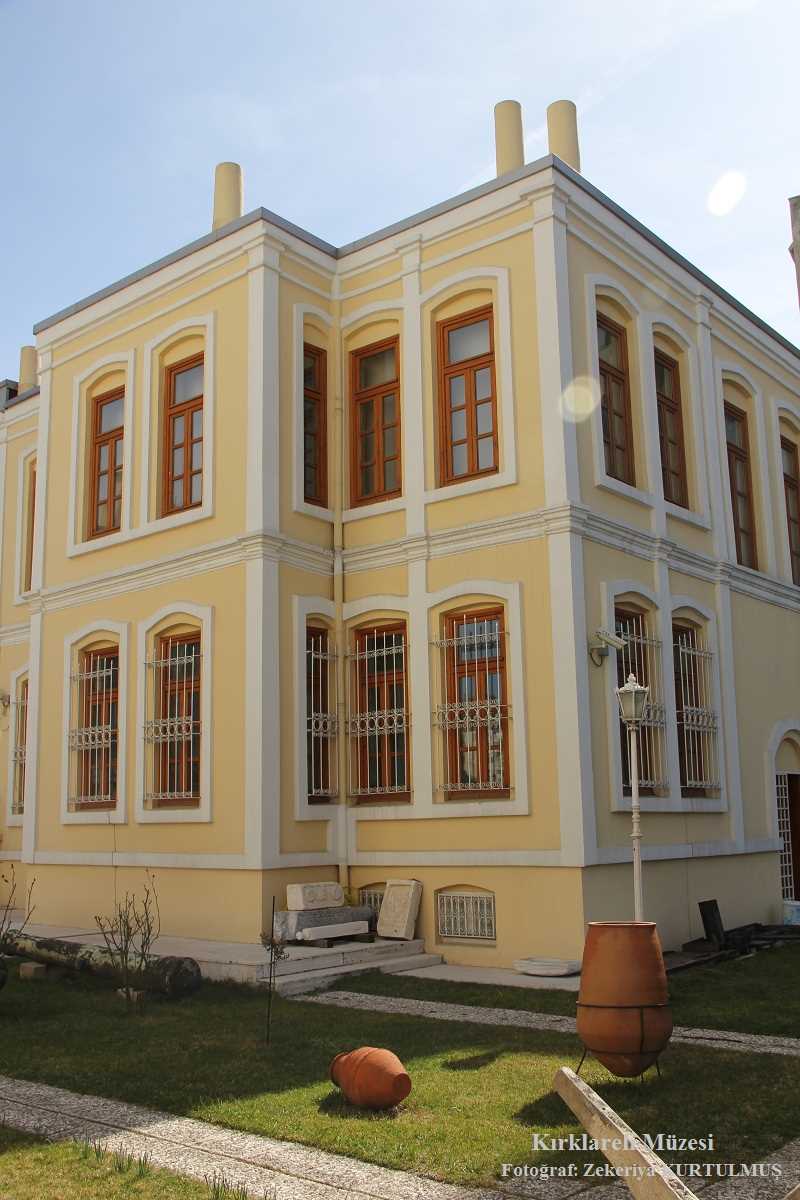 1894 yılında Mutasarrıf Neşet Paşa ve Belediye Başkanı Hacı Mestan Efendi zamanında yaptırılmıştır. 20 Aralık 1930’da Büyük Önder Atatürk tarafından ziyaret edilen bina, 1962 yılına kadar fiilen Belediye binası olarak kullanılmış, 1970’li yıllarda ise tamamen boşaltılarak terk edilmiştir. 1983 yılında başlayan ve çeşitli aralıklarla devam eden restorasyon çalışmaları 1993 yılında tamamlanmıştır. Tarihi binanın müze olarak düzenlenmesi çalışmaları ise Aralık 1990 tarihinde başlatılmış ve 14 Ocak 1994 tarihinde Kırklareli Müzesi resmen ziyarete açılmıştır. Bodrum hariç iki katlı betonarme olan yapının dört cephesinde kemerli pencereler yer almakta olup, girişte dört sütuna oturan cumba vardır. |