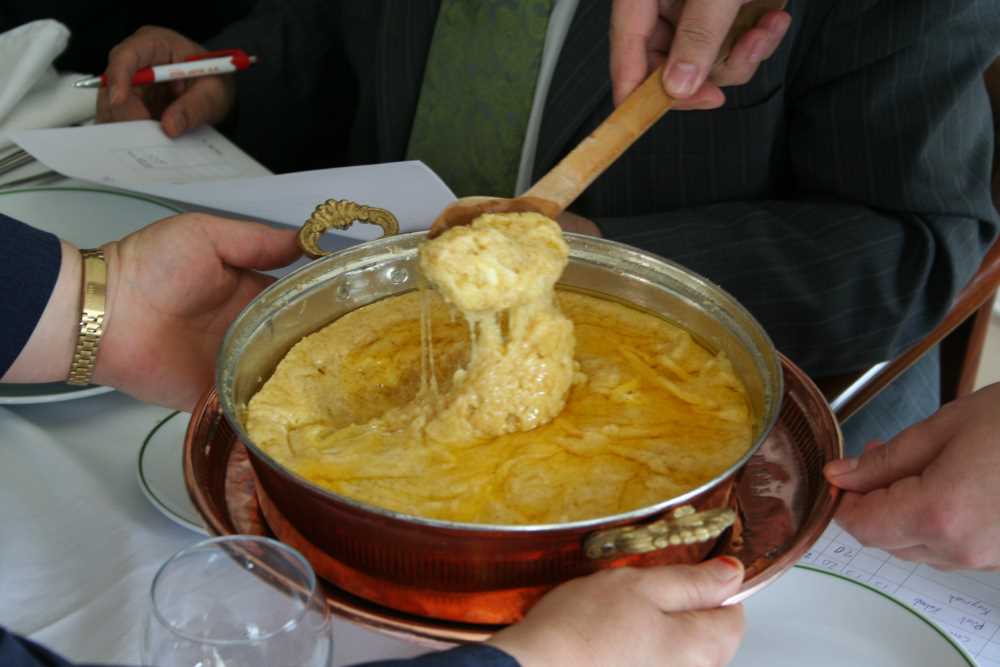 Tereyağı pembeleşinceye kadar kızdırılır ve su koyulur. 1 yemek kaşığı tuz ilave edildikten sonra 3 yemek kaşığı mısır unu karıştırılarak ilave edilir. Koyulaşıncaya kadar kısık ateşte 15 dakika pişirilir. 300 g telli peynir konulur 5 dakika daha kısık ateşte pişirilir. Sıcak servis yapılır.