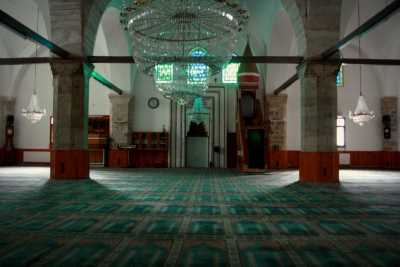 Cami 6 metre yüksekliğinde, çini mozaik ile kaplı görkemli bir mihraba sahiptir.