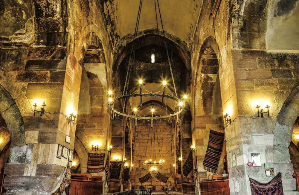 Kemer kavsarasının bulunduğu düz alınlık üzerinde beyaz mermerden bir kitabelik mevcut ise de üzeri islenmemiştir. Taç kapının basık kemerli kapı açıklığından dahil olunan kapalı/barınak bölümü, sivri kemerlerle birbirlerine ve duvarlara bağlanan kare planlı ayaklarla derinlemesine doğrultuda ve sivri beşik tonozlarla örtülü̈ beş̧ sahna taksim edilmiştir; orta sahın daha yüksektir. Söz konusu mekânın merkezindeki kare planlı alan, tuğla örgülü̈ bir kubbeyle örtülüdür; kubbe, çatı kotunda yükselen çift katlı ve sekizgen bir kasnağın içine gizlenmiş̧ olup, sekizgen bir piramidal külahla örtülmüştür.