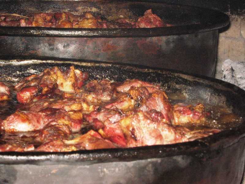 Etler iri parçalar halinde bırakılır.  Varsa kemikli  parçalar roma verirmesi için eklenebilir. Bakır veya kalın tabanlı bir tepsinin tabanına kuyruk yağı yayılır. Etler sıkıştırmadan yerleştirilir. Amaç etin kendi suyunda ağır ağır pişmesidir.