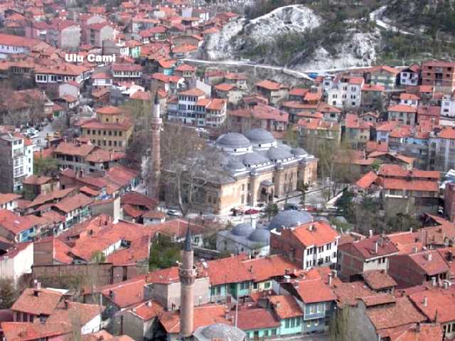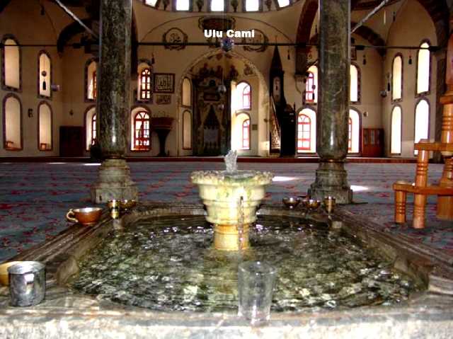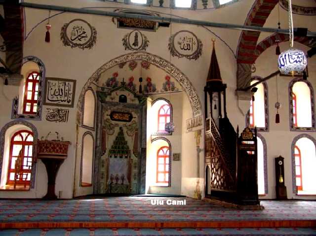 Evliya Çelebi’nin meşhur seyahatnamesinin 9. cildinde, Ulu Cami’nin ağaç direkli olarak inşa edildiğinden söz ederek şu bilgileri de vermektedir. Cami’nin iç 57 direk üzere kubbedir. Cemaati çok olduğu vakit 2 bin kişi alır. Kargir binadır. Kurşun örtülüdür.” Evliya Çelebi’nin bu ifadelerini de dikkate aldığımızda; önceleri ağaç direkli olan caminin tarihi süreç içerisinde birkaç defa onarım gördüğü kitabelerden de anlaşılmaktadır.