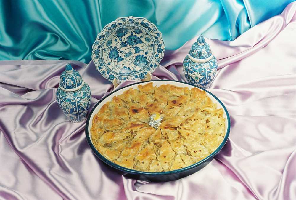 Temiz bir örtü üzerine konulan yufkalar su serpiştirilerek yumuşatılır. Fırın tepsisi hafifçe yağlanır. İlk yufka tepsiye döşenir. Daha önce kısık ateşte 5-6 dakika kavrulmuş olan ceviz içi, nişastanın bir kısmı, tepsiye döşenip yağlanmış olan yufkanın üzerine serpilir. Bu işlem 8 yufka için de sırayla yapılır. En üste kalan yağ fırça ile sürülür. Bıçakla baklava dilimleri halinde kesilir. 200 derece ısıtılmış olan fırında 20-25 dakika pişirilir. Daha önce hazırlanmış olan soğuk şerbet ılımış yufkaların üzerine dökülür. Bir gün dinlendirildikten sonra soğuk olarak servis yapılır.