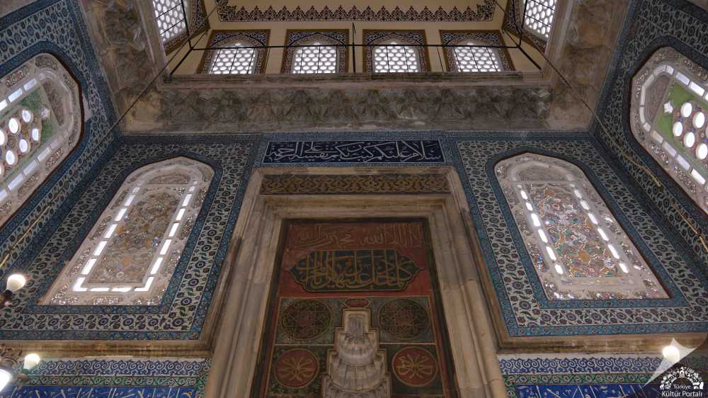 Külliyenin en gösterişli bölümü camidir. Kesme taştan yapılmış ters “T” planlı cami, klasik Osmanlı mimarisinin en zarif örneklerinden biridir. Ortada bir büyük merkezi kubbe, yanlarda ve güneydeki mihrap çıkıntısında ise tonozlu çatı sistemi ile örtülmüştür. Kuzey cephesinin köşelerinde tek şerefeli bir çift minaresi vardır. İnce süslemeler ile bezeli iç mekâna, fildişi, sedef ve bağa kakmalarla bezenmiş çift kanatlı bir kapıdan girilmektedir. Mihrap duvarı İznik çinileriyle kaplıdır. Mermer minber çok değerli bir sanat eseridir. Üst pencerelerde cam işi süslemeler yer almaktadır. Güneydoğu köşesinde bulunan mermerden yapılmış hünkâr mahfilinin tavanı malakâri işlemelerle, kubbe, tonoz, kemer ve pencerelerin etrafı ise kalem işleri ile bezenmiştir.