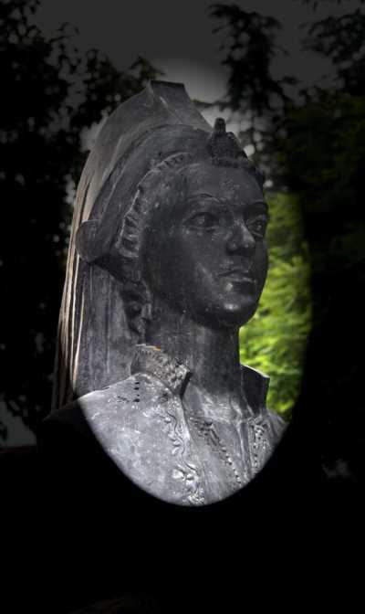 (Beton kaide üzerinde tunç dökümden yapılmış büst) |