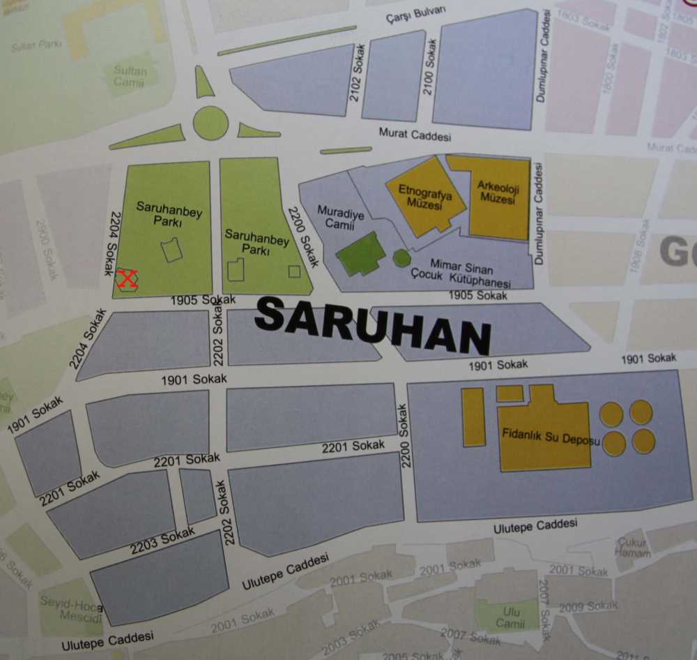 SARUHAN BEY MAHALLESİ SARUHAN PARKI İÇİNDE. MURADİYE CAMİİ’NİN BATISI |