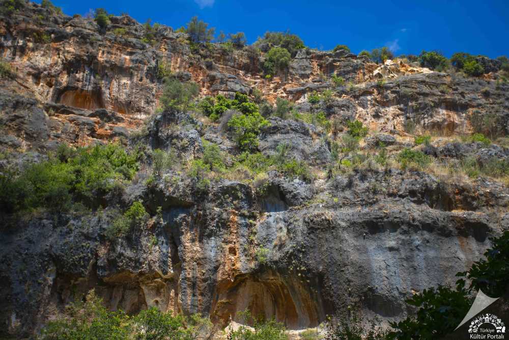 Antik dönemde Korykos Mağarası olarak adlandırılan, her biri kayalık, geniş ve derin çukurlardan oluşan iki doğa harikasından biridir. Çökük tabanının güney ucunda büyük mağara girişi ile bu mağaranın ağzında küçük bir kilise bulunmaktadır. Kayalara gelişigüzel oyulmuş yaklaşık 450 basamaklı bir yoldan önce kuzey, sonra güney yönünde ilerlendiğinde 300’üncü basamakta kiliseye ulaşılır.