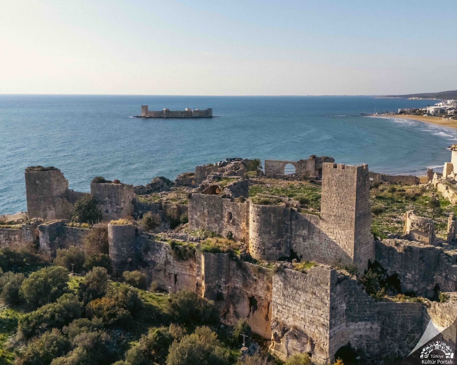Korykos’ta Helenistik dönemde başlayan kentleşme ile içinde bulunduğu coğrafyanın avantajı kullanılarak güvenli bir şehir yaratılmış ve bölgede başka bir örneği bulunmayan deniz ve kara kalesinden oluşan ikili bir savunma sistemi oluşturulmuştur. 1099 yılında İmparator I. Alexion, Mimar Megas Drungarios Eustatias’a karadaki kaleyi yaptırmıştır.