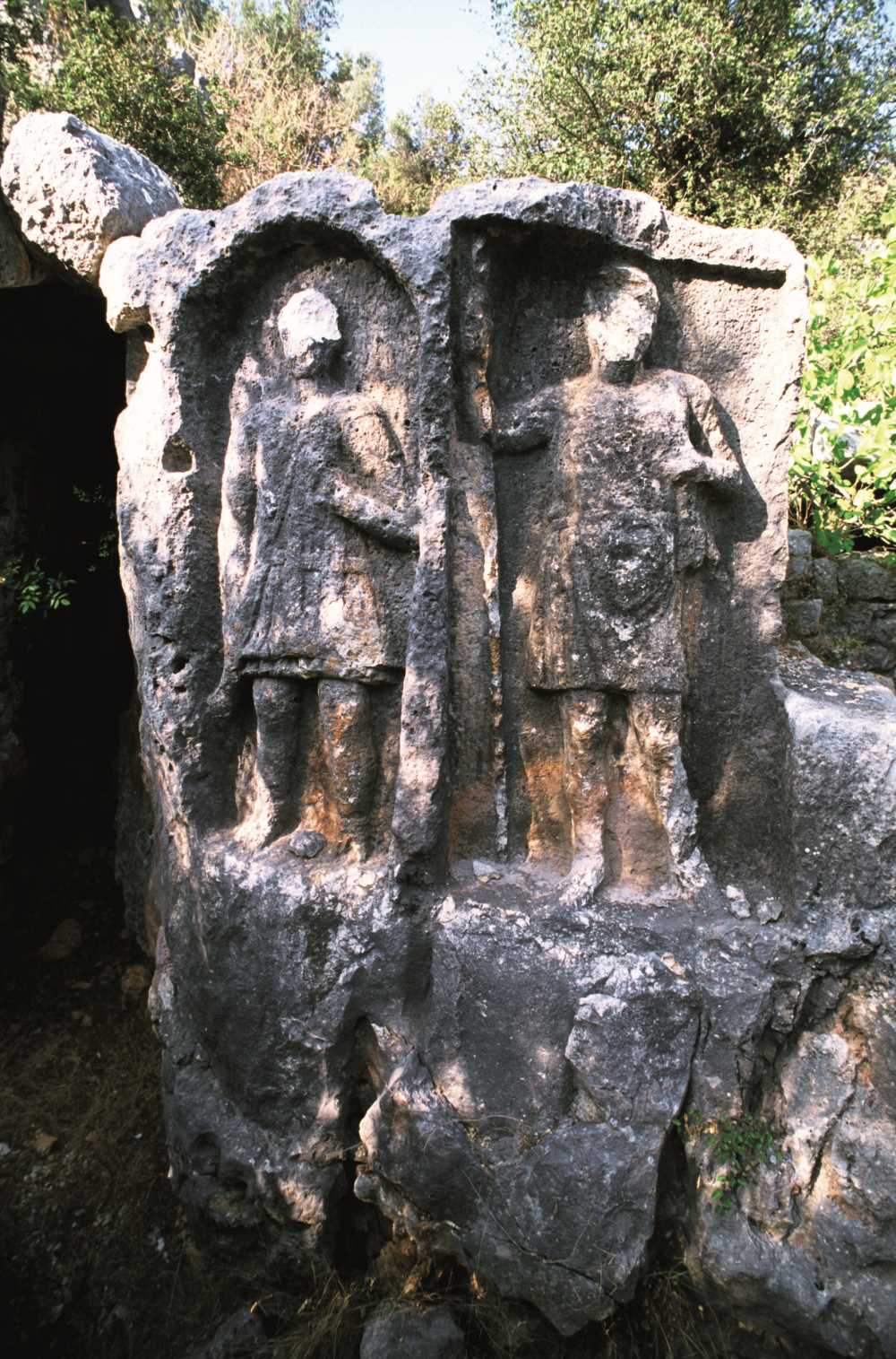 Ören yeri, çalılıkların ve ağaçların altında kaldığından zor gezilebilmektedir. Yamacın bir kısmında sık aralıklarla evler dizilidir. Ören yerinde bulunan kabartmalar arasında iki asker, oturan bir kadın ve bir erkek (rahip ve rahibe) bulunmaktadır. Yine Roma dönemine ait mezar yapılarına rastlamak mümkündür. Nekropol alanı güney yamaçtadır. Lahitler ve mezar odaları, bu nekropol alanı içerisinde yer alan mezar tipleridir.