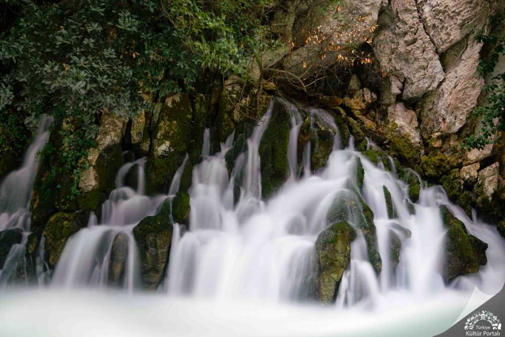 Konglomera kayalıklardan dökülen şelale, özellikle kış ve bahar aylarında karların erimesiyle en yoğun debisine ulaşmaktadır. Bugün aynı noktada yer alan ve Roma dönemi sonlarına kadar kullanılmış olan nekropoldeki basamaklı ya da rampalı (dromos) oda mezarlar, oyuldukları konglomera kayaların zayıf oluşu nedeniyle güçlü akıntılara karşı koyamayarak büyük ölçüde tahrip olmuştur.