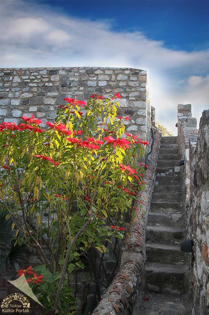 1406-1523 yılları arasında inşa edilen St. Jean Şövalyeleri'nin kalesi, kare planlı, 180 x 185 metre ölçülerindedir. İç kale içerisinde Avrupa’nın değişik uluslarının şövalyelerinin yaptırdığı kuleler bulunmaktadır. En yüksek kule deniz seviyesinden 47,50 metre yükseklikte olan Fransız Kulesi'dir. Diğer kuleler İtalyan Kulesi, Alman Kulesi, İspanyol Kulesi (Yılanlı Kule) ve İngiliz Kulesi'dir.