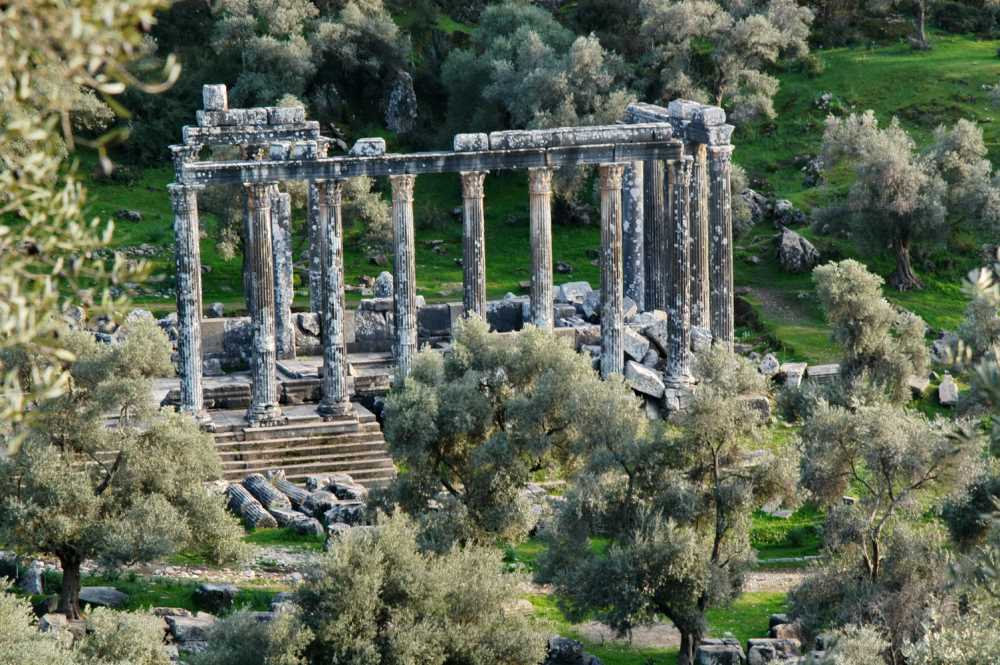 Kent kalıntıları çok yıpranmış olmalarına karşın, Asya’nın en iyi korunmuş yarım düzine tapınağından biri de Euromos’taki Zeus Tapınağı’dır.
